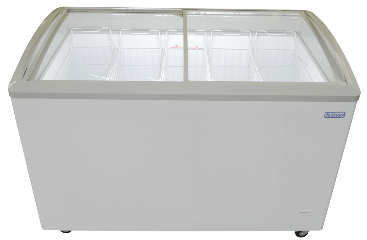 ZAMRAŻARKA do przechowywania lodów i żywności mrożonej z wypukłymi, przesuwnymi szybami.