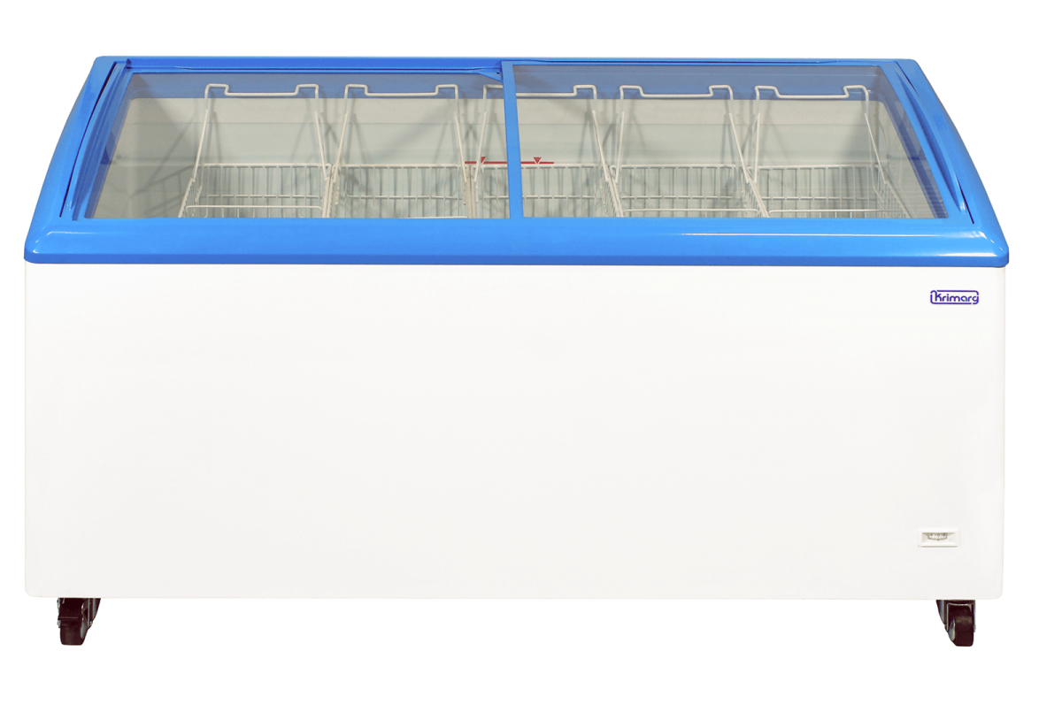 ZAMRAŻARKA do przechowywania lodów i żywności mrożonej z wypukłymi, przesuwnymi szybami.